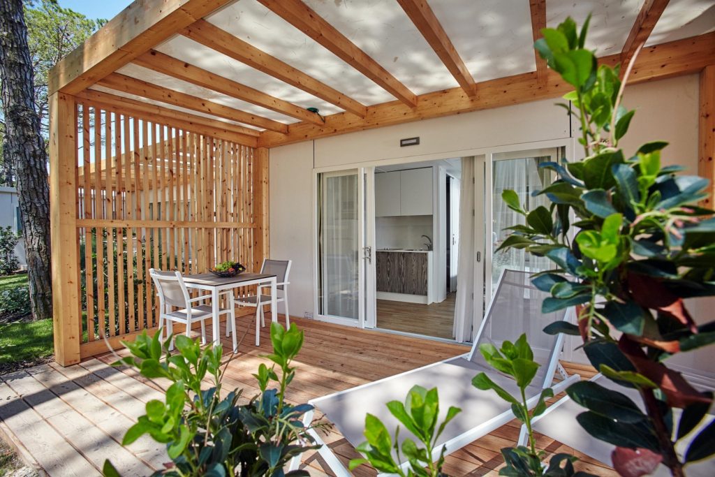 The Chalet Laguna Mini is the perfect choice for a holiday for two in Cavallino Treporti, set between the sea and nature. A modern, functional studio designed according to Universal Design principles and fully accessible to guests with disabilities, thanks to its generous layout. Contemporary design, eco-sustainable materials, and sitting naturally within the pine forest of Camping Village Mediterraneo.